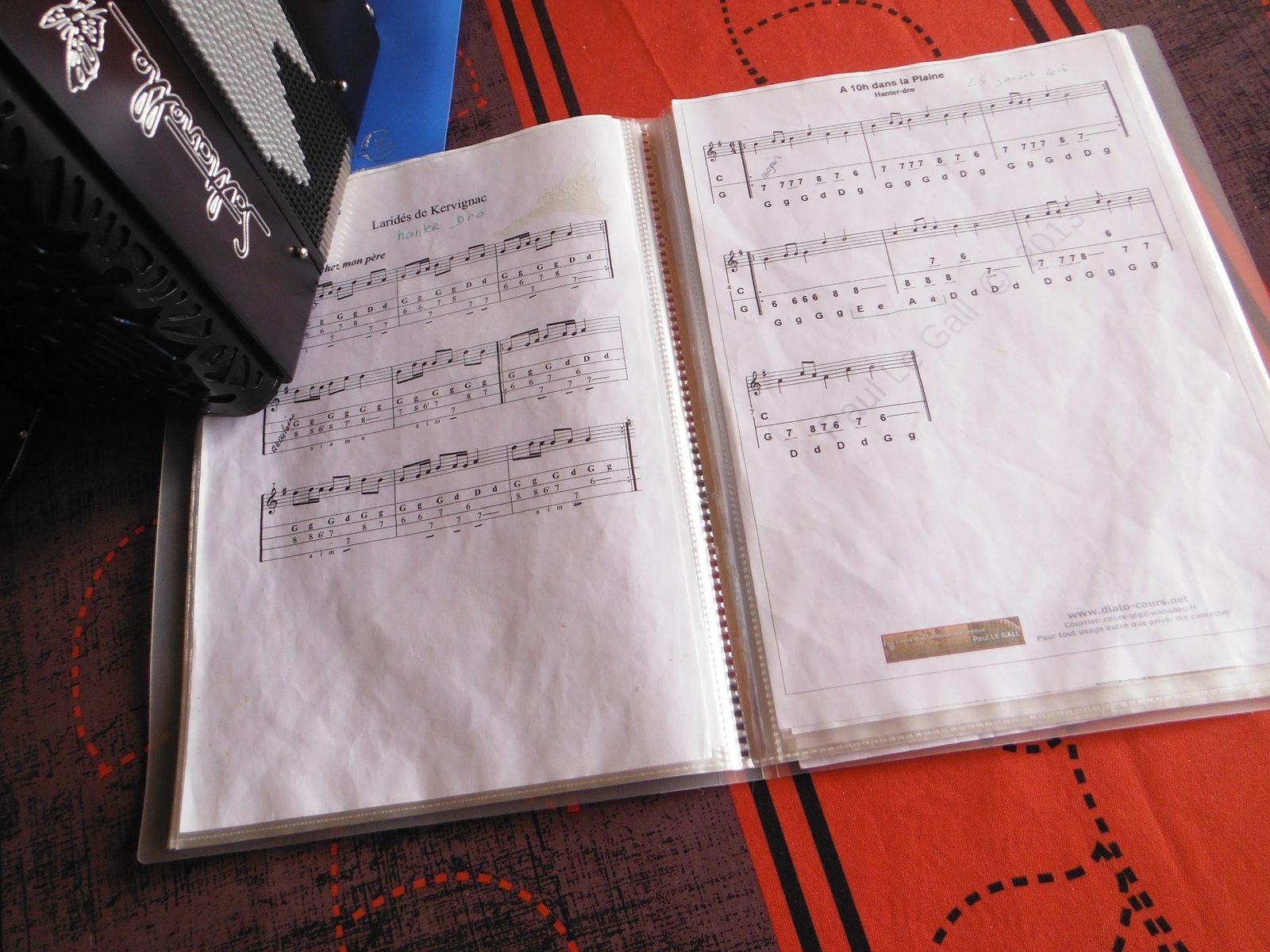Partitions d'accordéon diatonique ; le 21 février 2020, jour de l'achat de l'accordéon, sur un coup de coeur.